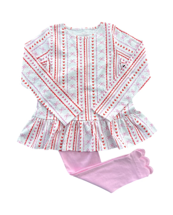 Peggy Peplum Legging Set - Scallops and Heart Print