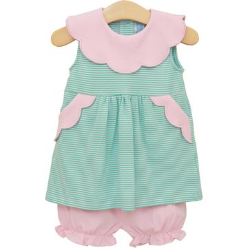 Penelope Bloomer Set- Mint Stripe/Light Pink