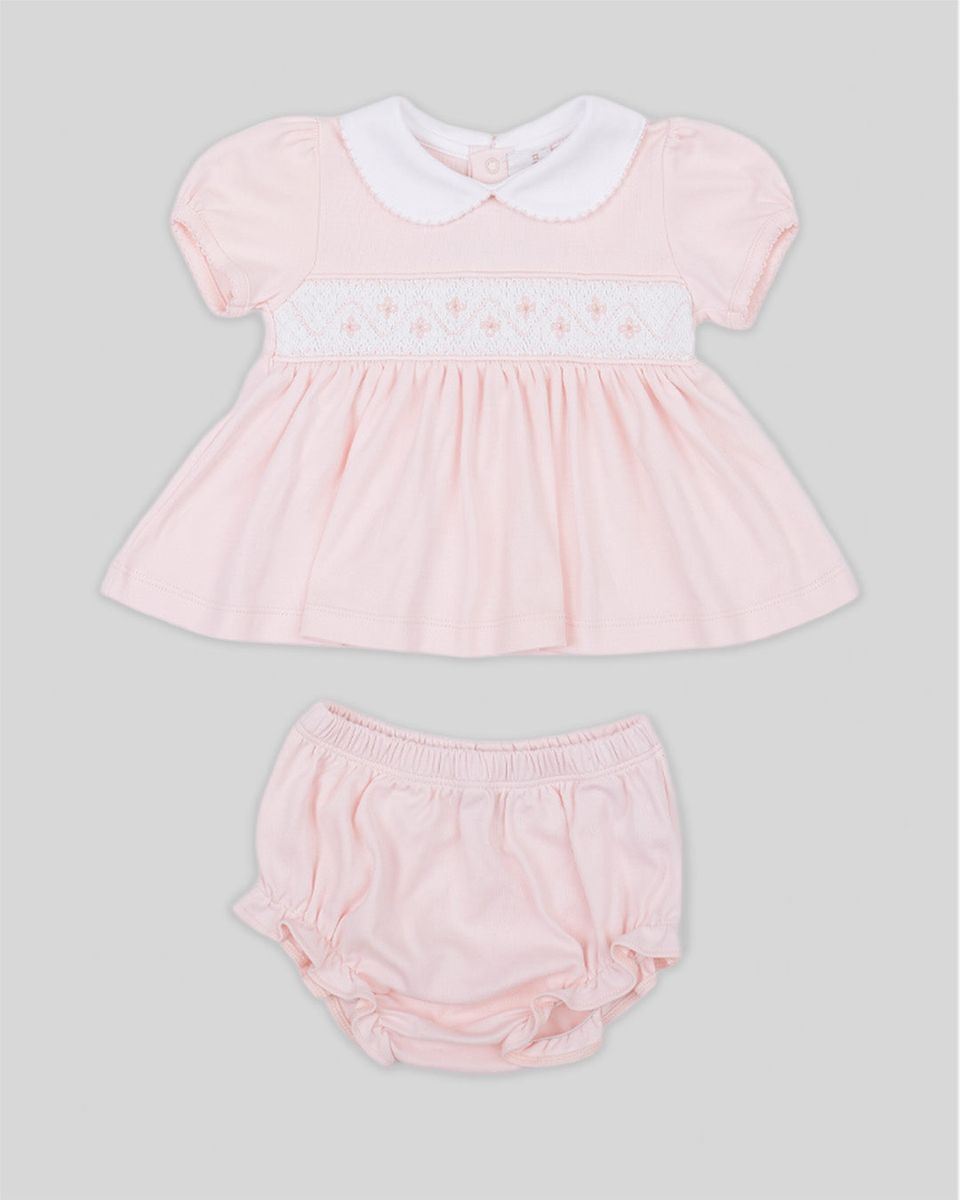 Mini Dress Set Alma Baby Girl Pima Cotton Hand Smocked - Pink