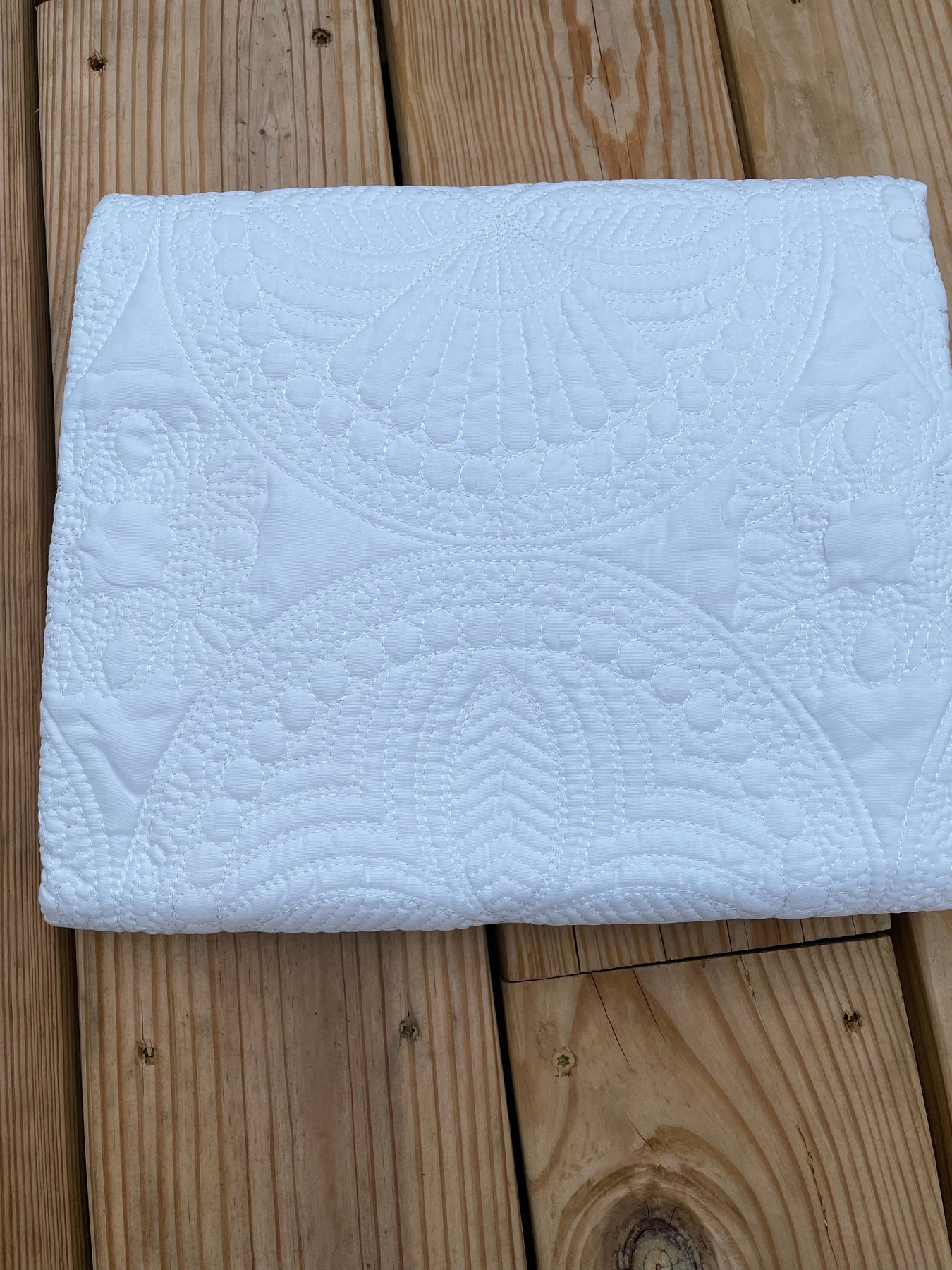 Our wonderful cotton heirloom quilt measures 45 x 36 inches. It’s the perfect shower gift that no grandmother can resist. This is a great quilt that can be monogrammed buy you to add to your profit margin.