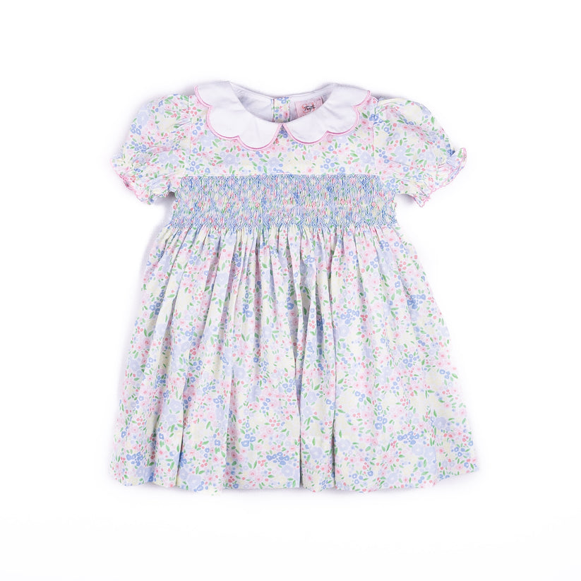 Pink & Blue Ashley Floral Smocked Ava Dress - Scallop Collar