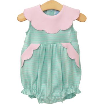 Stripe Classic Pink Peter Pan Collar Bubble W/ Skirt