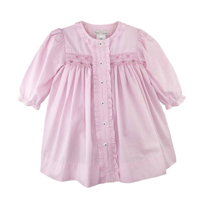 Santa Embroidery Pink Moonstitch Edge Medium Grosgrain Hair Bow with