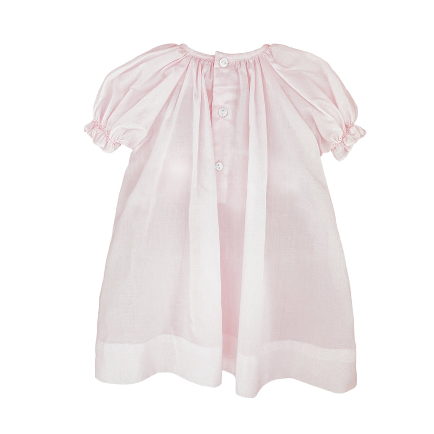 Our soft and delicate daygown for baby girls makes a beautiful outfit for family photos and special occasions. The lightweight batiste fabric keeps little ones cool and comfortable and is easy to care for – just machine wash and tumble dry. Featuring heirloom-quality handcrafted details like hand smocking and hand embroidered flowers at the hem, this dress is sure to become a treasured keepsake.